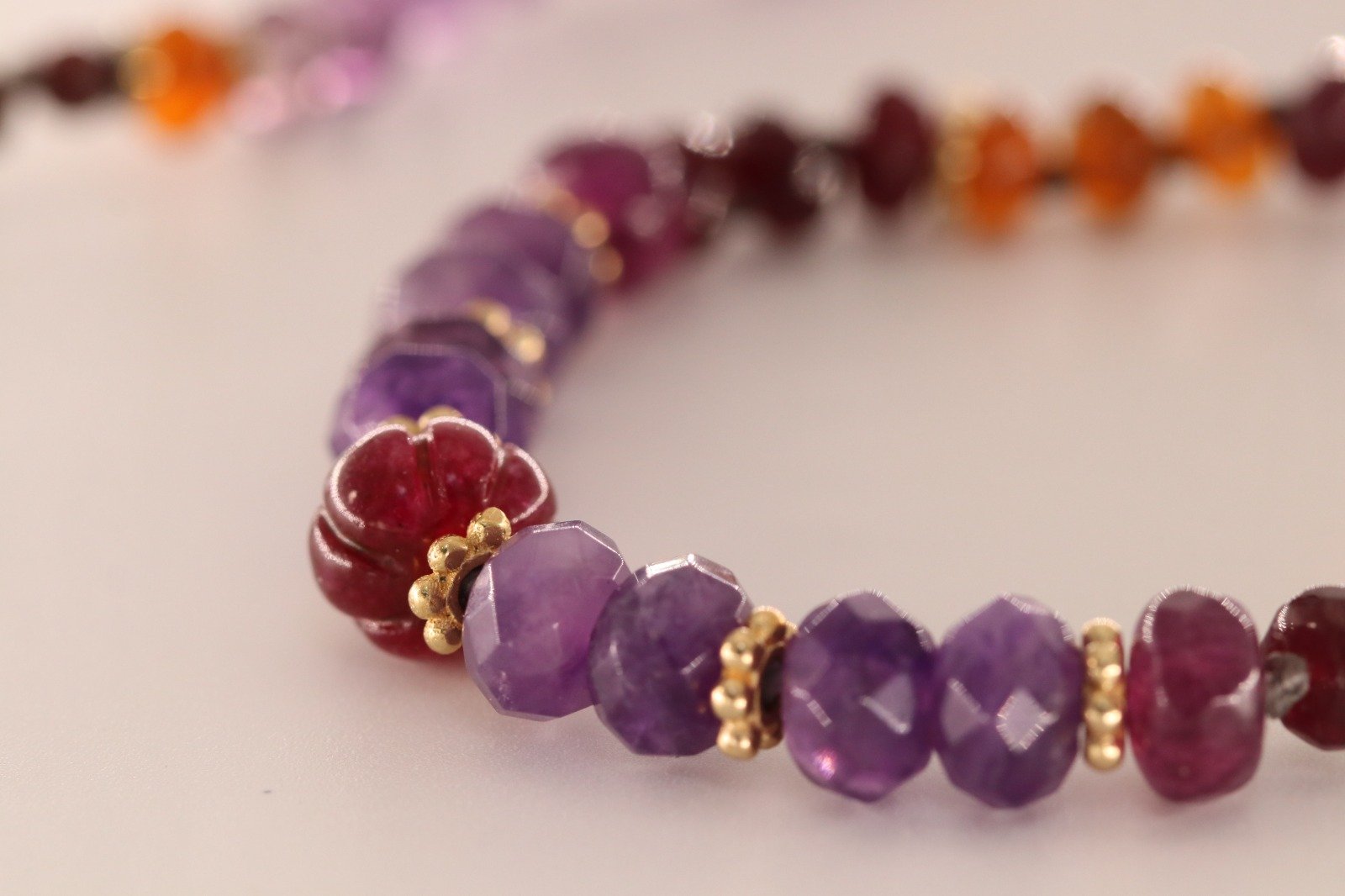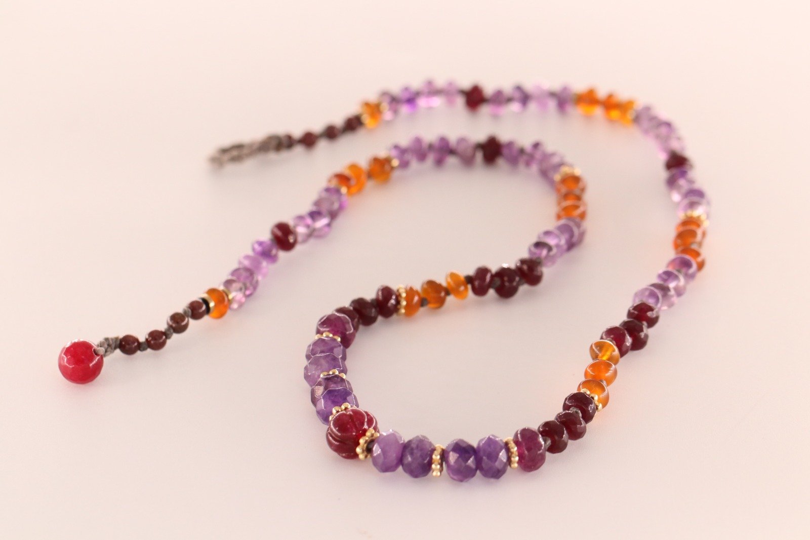 רובי בוהקת כמו לב מלא תשוקה ושמחת חיים, מעודדת איזון ורוגע פנימי, ומחברת אותך לכוח הנשי שבתוכך. גרנאט מעניק חוסן והגנה, בעוד אמאטיסט מפזר שלווה וחכמה בכל רגע. ענבר מקרין חום ואנרגיה מחיה, וגולדפילד מוסיף נגיעה של זוהר ועוצמה עדינה.