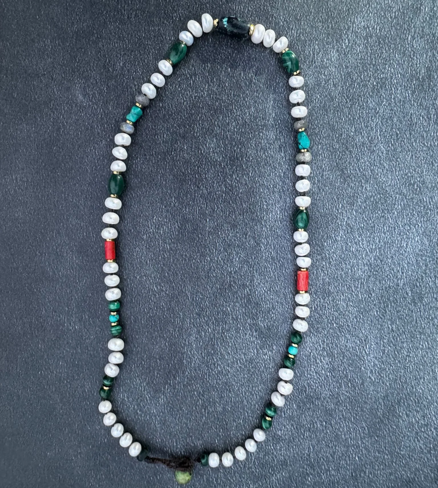 Turquoise (טורקיז), Pearl (פנינה), Malachite (מלכיט), Coral (קורל), Labradorite (לברדוריט), Hematite (המטייט).